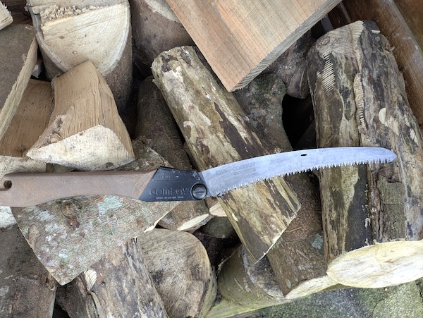 Unlike my Laplander pruning saw, which cuts both forwards and back, the Silky cuts only on the pull stroke (towards you). You might think this makes it less efficient but it absolutely doesn’t. The Silky is so sharp it cuts much more quickly. I now enjoy making a small stack of firewood for my firepit, and it takes a fraction of the time.