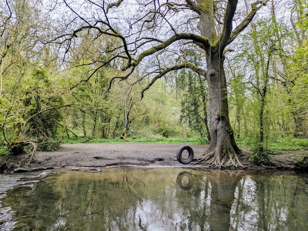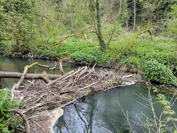 The smell of wild garlic (ramsons) as we entered the woods was delicious, I have never seem such carpets and it’s starry white flowers were just coming out. The path down and along Egford Brook had a warning sign, it was steep in places and uneven right along. We could see where floods had caused damage but they weren’t the only thing altering this landscape.