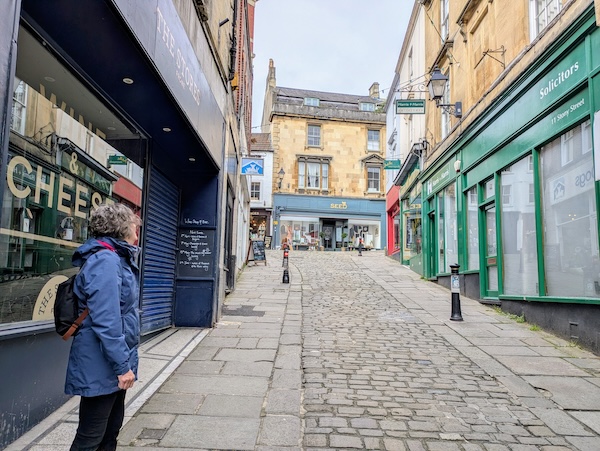 Still in town and back on the East Mendip Way we explored cobbled Stony Street, then headed up Catherine Hill to look in the window of Moo and Two (an award-winning tea and coffee shop) we didn’t stop because by then our window shopping had used up a fair amount of our allocated walk time.