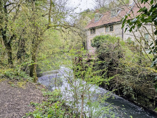 We (and Egford Brook) eventually reached the Mells River, which we crossed via a footbridge. Instead of turning right to walk through Vallis Vale, we headed left to make our way round the riverbend at Bedlam. This is such a peaceful valley now but it was once a hub for cloth production and water-powered machinery. We found plenty of fascinating evidence of this activity.